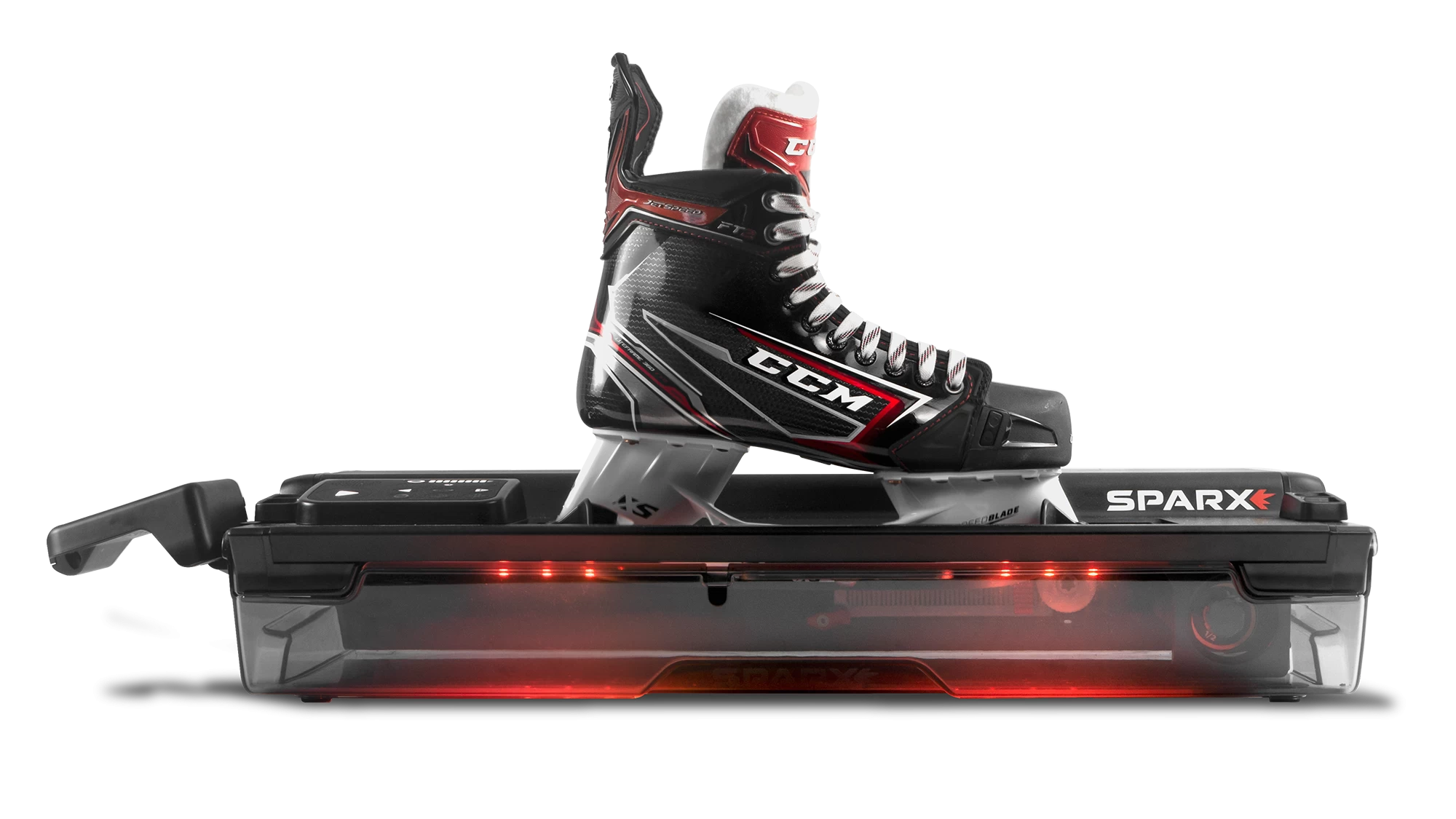 The Sparx Sharpener delivers pro-level accuracy every single time and the all new, lightweight design allows you to sharpen anywhere, anytime – from your home to the rink.